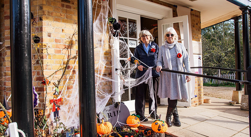 Over recent months, staff members have been busy knitting and crocheting in their own free time, crafting dozens of Halloween-inspired pieces to bring a burst of autumn colour and creativity to the village. From smiling pumpkins to witches and spiders, each item has been lovingly made by hand and carefully arranged to form a striking “Halloween curtain” now displayed outside the entrance to the Buckler’s Hard Museum.