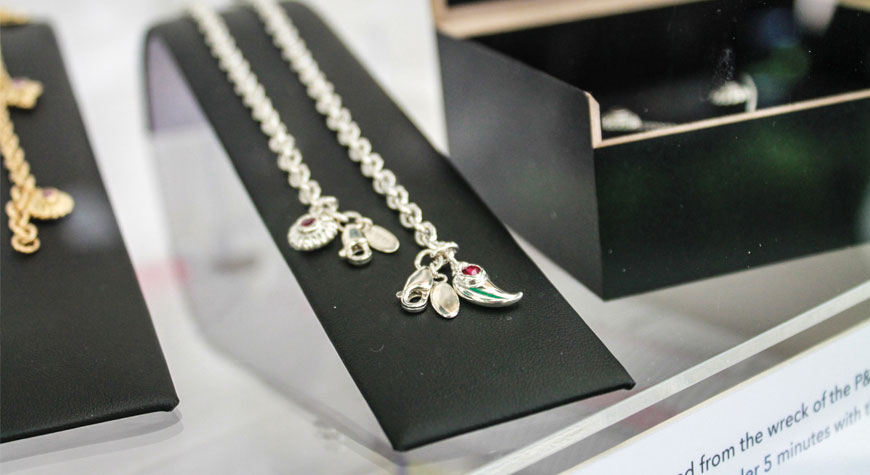We are pleased to present a unique collection of limited edition designer jewellery created using gems brought up from the wreck, which have kindly been gifted by Deep Tek to raise money for Smile Train cleft lip charity and Mission to Seafarers.