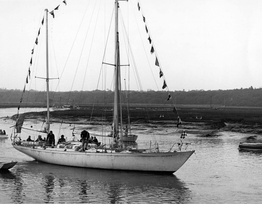 Sir Francis sailed from Buckler’s Hard on August 12th 1966 for trials on the Solent before finally leaving Plymouth on August 27th. After 226 days at sea, with only one stop in Sydney, the 65-year-old sailor and former aviator finally returned to Buckler’s Hard on September 17th the following year when a celebratory homecoming with fireworks was arranged to welcome him. He had travelled a staggering 29,630 miles in the 54ft ketch and eventually returned to his Beaulieu River mooring.