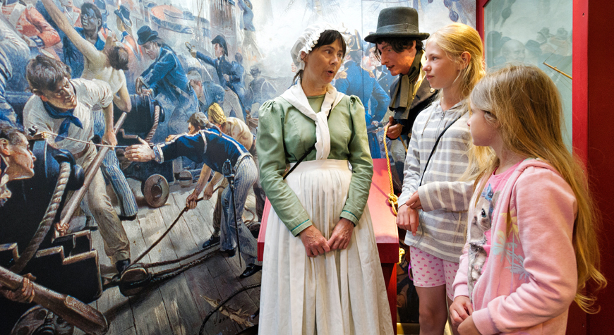 Role play tours in which the children take the part of 18th century visitors to see the village where ships for Nelson’s navy are built, including his favourite Agamemnon. Learn about Nelson, Master Shipbuilder Henry Adams, the cat-o-nine-tails, and more about life in the 18th century village.