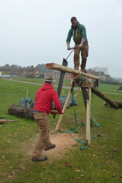 Then off to work, lots of lessons in how to use an axe and the different types of axes. Plus, sawing old fashioned style with huge long frame and pit saws. Really hard work and as the weather got hotter productivity got a bit slower.