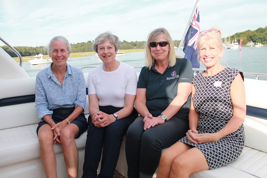 Theresa May sails on the beaulieu river to visit Buckler’s Hard